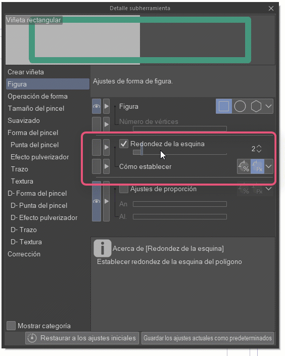 저는 이 확인란을 눈 모양 아이콘으로 활성화하여 도구 속성에 바로 나타나도록 하는 것을 추천합니다.