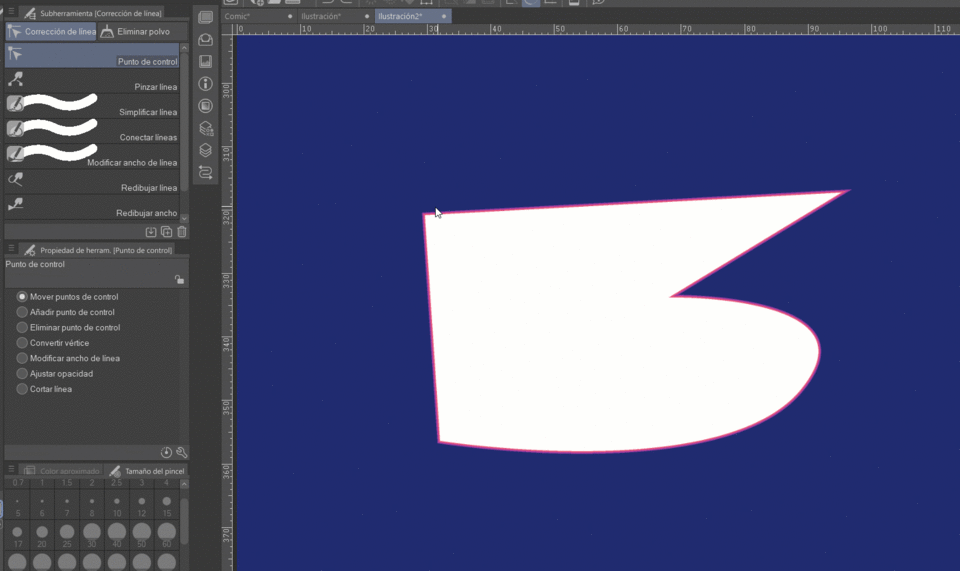 제가 주로 사용하는 것은: 제어점 이동, 제어점 추가, 제어점 삭제, 꼭지점 변환입니다.