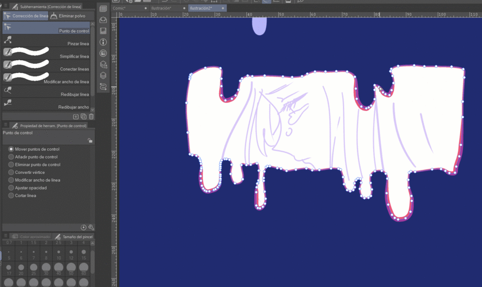“다각 말풍선” 및 ”말풍선 테두리 펜” 도구로 만든 말풍선의 경우, 위에서 설명한 내용이 동일하게 적용됩니다. 반면에, 이러한 말풍선은 복잡도에 따라 “선 보정” 도구를 사용하는 것이 더 나을 수 있다고 생각합니다. 이 도구로 일부 조정을 하는 것이 더 편리하다고 느낍니다.