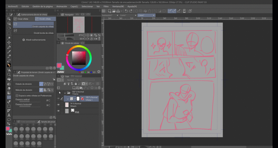 캔버스 설정(크기, 여백)을 명확하게 하는 것을 추천합니다. 만화를 만들 경우 캔버스 크기와 여백이 같아야 조화롭습니다. 저는 웹툰을 만들 때 주로 웹용으로 작업하므로 이상적인 해상도는 72dpi이며, 만화와 내용의 세부 정도에 따라 A4-A6 크기와 기본 템플릿을 선택하는 편입니다.