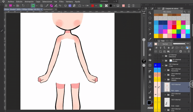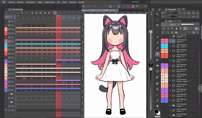 此編輯的最後部分將是眼睛,為此我們將首先回顧影格 1 - 2 - 3 - 4 - 5 - 6 是主要影格,那麼: