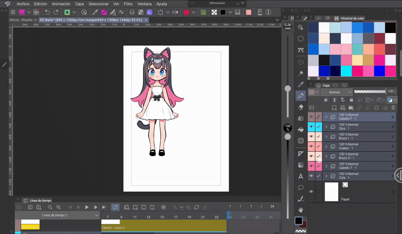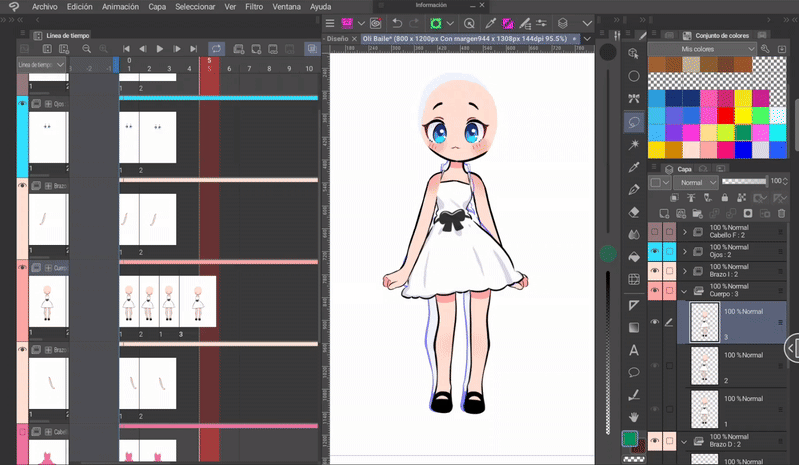 在這個過程中,我們將為插畫製作一個基本的舞蹈循環動畫。這是動作的結果;教學的最後將展示帶有背景的最終動畫,希望大家喜歡。