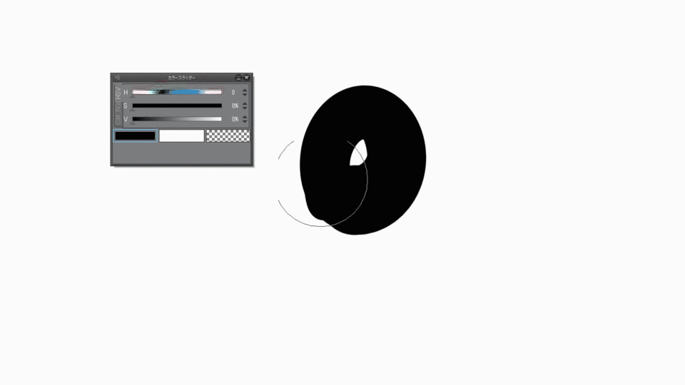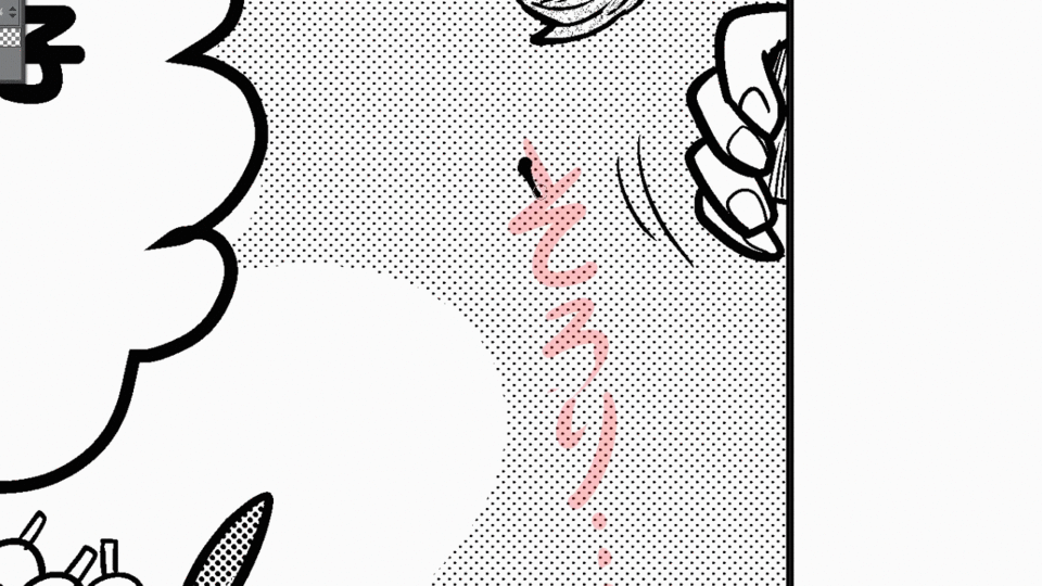 但是,雖然不為人所知,但在矢量圖層中以黑線繪製透明色具有能夠獲得用橡皮擦擦除的效果的特性,這裡就用到了這個特性。 .. 但是,應該注意的是,這些線條實際上並沒有消失。透明顏色矢量就在黑色矢量之上。這種技術不僅對於擬聲詞非常有用,而且對於繪製人物和背景也非常有用,但請注意,透明矢量可能會在不知不覺中影響您作為一個桶或矢量交集。細節將在另一時間解釋。