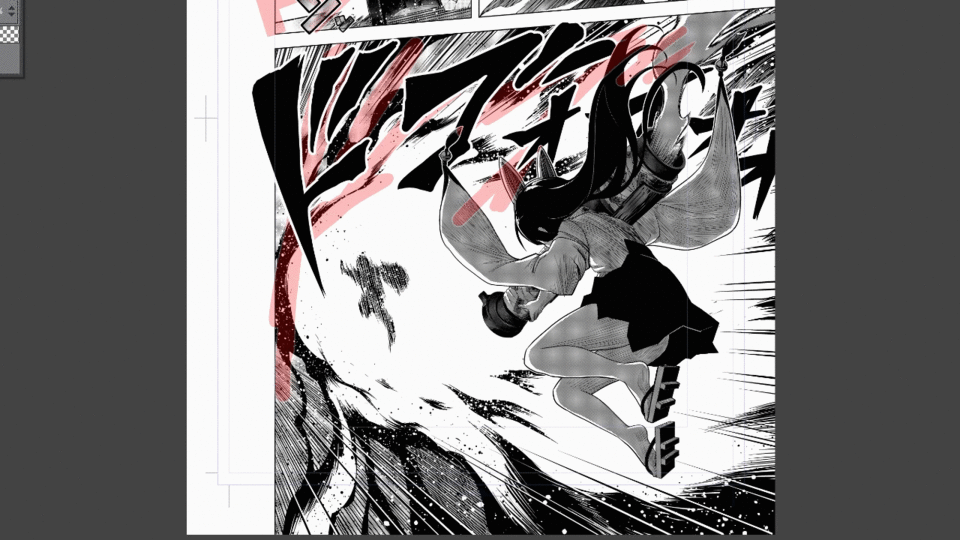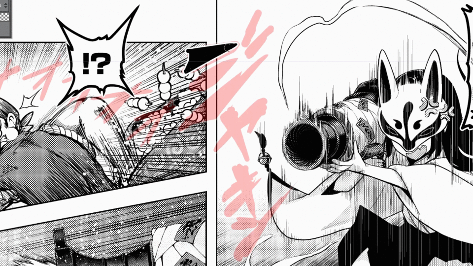 在上面的漫畫中實際繪製音效的同時,我將介紹如何使用矢量圖層來繪製漫畫中的擬聲詞和音效。我已經為視頻添加了英文字幕,所以也請在那裡看看。