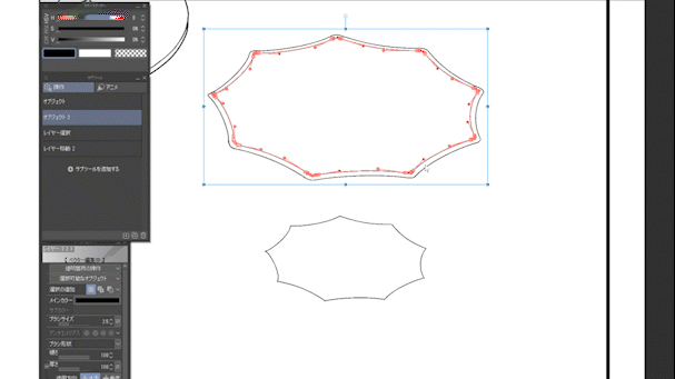 圓和多邊形的情況下,只有一個矢量,所以我可以用對象工具原樣複製粘貼,但這次是一個有很多矢量的圖形,所以只能選擇一個矢量線,所以有必要設計。