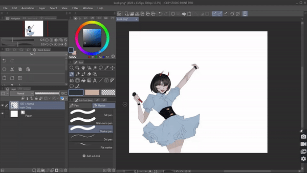 您可以在 Internet 上找到這些紋理,或者 CSP 有一堆可供使用的紋理。為此,請轉到材質菜單>單色圖案,您會在其中找到很多紋理。選擇並拖放要應用的紋理到畫布上。根據你的情況調整它。