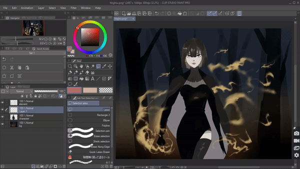 確保角色、背景、魔法元素在 3 個不同的層中。
