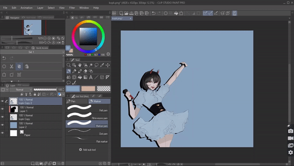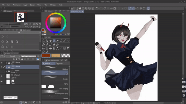 確保你的角色和背景處於不同的層次。現在在上面創建一個新層並將其剪輯到角色層。選擇一點飽和的顏色,我將使用藍色並將其應用於整個圖層。