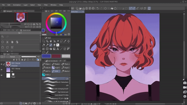 Clip Studio 有不同的紋理圖案,僅適用於這種和服圖案的服裝。只需將它拖放到畫布上,然後將其混合模式更改為“疊加”或“柔光”。你會得到這樣的東西。