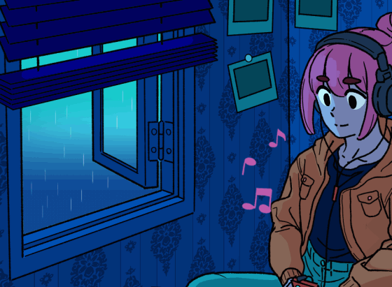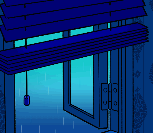 將以下元件動態化可以傳達出時間的推移:眼睛、來自窗外的光、音符、雨、百葉窗的拉繩。