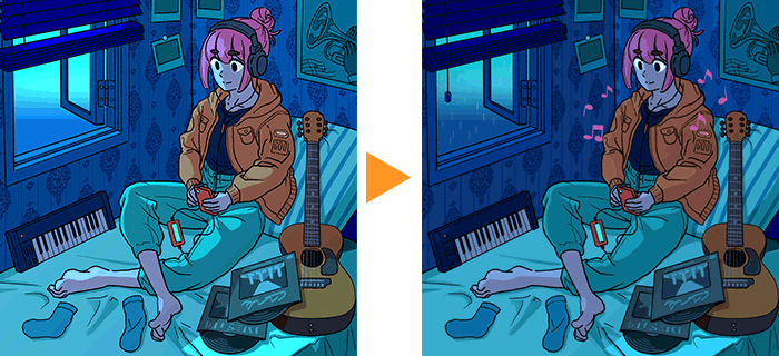 為了呈現正在聽音樂的氛圍,要在人物的周圍追加音符效果。