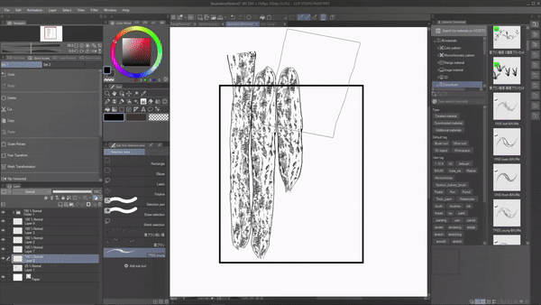 這些只是畫筆,您可以在 csp asset 中找到更多內容。這很棒,因為您不必在網路上閒逛就能找到這些材料。