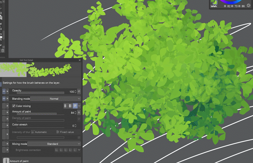 顏色混合中的新塗抹模式非常棒——它確保全色筆觸,避免半透明的筆刷痕跡。