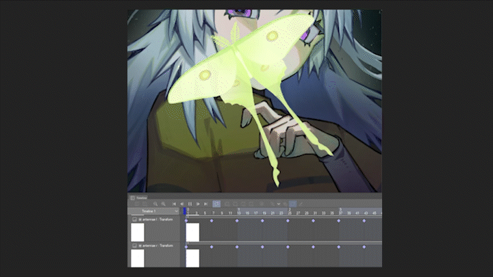 我也想讓飛蛾的觸角動起來,所以我使用了相同的技術。我有兩個觸角圖層,一個用於左側,一個用於右側。